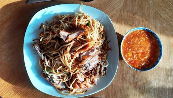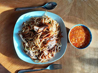 Das Hanoi Quan ist ein kleines asiatisches Restaurant mit 8 Tischen à 4 Sitzen. Der Gastraum ist schmal und die Tische befinden sich rechts und links an den Wänden. Es befindet sich an der vielbefahrenen ehemaligen B 434. Es gibt eine grosse Auswahl an günstigen Mittagsgerichten, die man auch mitnehmen kann. Dann bekommt man 10 % Rabatt. Die Gerichte werden entweder mit einer Frühlingsrolle oder mit der berühmten Peking Gulaschsuppe angeboten. Die Speisekarte bietet fast 120 schmackhafte Gerichte in der Preislage zwischen 6,90 und 16,50 €. Die Mittagsgerichte kosten zwischen 6,90 und 8,50 €. Ich hätte dem Service eine bessre Note geben können, aber weil ich meinen Hund dabei hatte, musst ich vor dem Restaurant auf mein Essen "ausser Haus" warten.