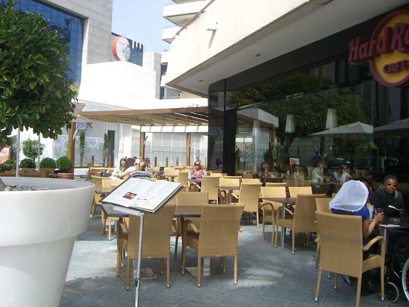 Wer das Hardrock Cafe in Marbella sucht,ist dort verkehrt,denn es befindet sich in Puerto Banus. Es ist nicht in dem üblichen Rockstyl wie die meisten Hardrock Cafes.Es ist wirklich ein Cafe. Im Innen und im Aussenbereich und eher ein modernes Styling an Möbeln.Aber einen sehr großes Verkaufsraum mit sehr viel Auswahl an Shirts,Jacken und Sweater.Es gab sogar sehr viele Angebote.