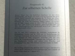 Rund um den Hauptmarkt findet man viele schöne Gebäude. Eines dieser schönen Bauwerke ist das Haus am Hauptmarkt 41, welches 1719 als Gasthaus „Haus Zur Silbernen Schelle“ erbaut wurde. Zwischen 1873 und 1952 hatten hier Banken ihren Sitz (ursprünglich Hofbankhaus der Gebrüder Goldschmidt, später die Thringer Staatsbank und nach dem Zweiten Weltkrieg die Landeskreditbank Thüringen). Ab 1952 diente das Haus „Zur Silbernen Schelle“ unterschiedlichen Zwecken. Heute ist wieder eine Bank in diesem schönen Haus.