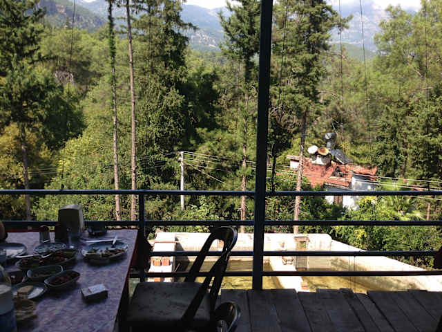 Von Kemer kommend, haben wir einen kleinen Abstecher zu dem urigen Dorf Ulupinar unternommen. Man erreicht dieses Dorf auf der D 400 von Kemer aus bis zum Abzweig Beycik an einem ziemlich steil talwärts führenden Strassenstück links nach Ulupinar. Es gibt im Bereich Ulupinar viele große Restaurants mit Forellenzucht, die auf Busgruppen warten und entstrechende Preise nehmen. Wir haben das etwas kleinere HAVUZ-BASI-Restaurant vorgezogen, welches aufgrund seiner guten Küche bekannt ist. Dort gab es Fladenbrot, Salat, Butter, Käse und verschiedene Vorspeisen auf den Tisch und die von uns bestellten Forellen im Steintopf gebacken (Kiremite Balik) waren einfach nur lecker. Eine Forelle kostet hier zwar auch 8 YTL, aber Brot, Salat und Käse sind im Preis schon inbegriffen. Speziell das Dorf Ulupinar hat uns sehr gut gefallen. Das urige kleine Dörfchen liegt am Hang abseits des großen Touristenrummels. Auf der Terrasse der kleinen Dorf-Kneipe sitzen die alten Männer nebeneinander und rühren sich kaum. Sie schaun in die Landschaft und genießen ihren Cay (türkischer Tee). Auch wir haben nach dem leckeren Essen einen Cay und/oder einen türkischen Kaffee getrunken.