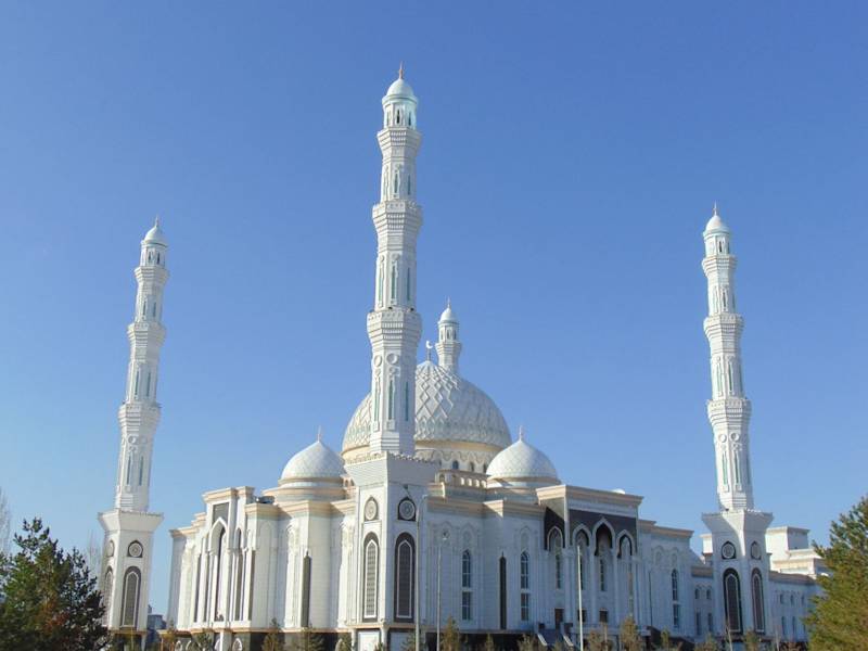 Die Hazret Sutan Moschee - eine Moschee sunnitischer Glaubensrichtung - befindet sich gegenüber vom Unabhängigkeitsplatz in der kasachischen Hauptstadt Astana. Sie ist erst - nach einer nur dreijährigen Bauphase - im Juli 2012 eröffnet worden. Der Stil ist wunderschön und klassisch, birgt aber zusätzlich auch kasachische Elemente. Die Kuppel ist mit 51 m Höhe die höchste in ganz Kasachstan und neben ihr gibt es noch acht kleinere Nebenkuppeln. Der goldene Halbmond befindet sich auf einer Höhe von 80 Metern! In der Hazret Sultan Moschee finden bis zu 10.000 Gläubige Platz! Ich war nicht drin, sondern habe sie mir nur von außen angeschaut und war überwältigt! Sehenswert!