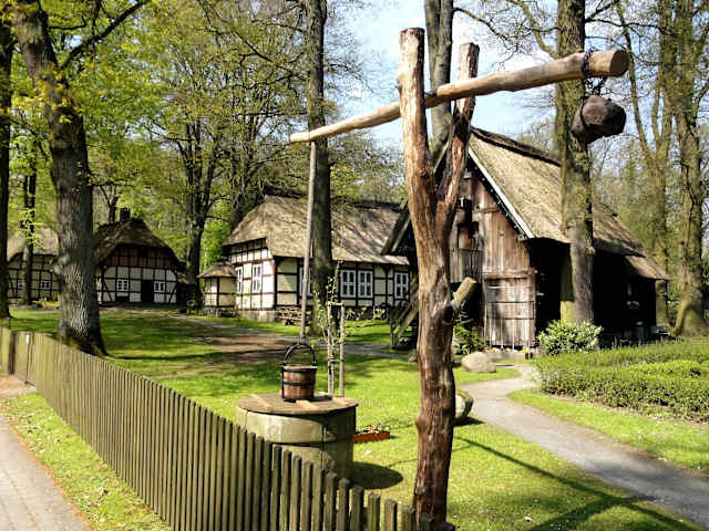 Unter hohen alten Bäumen findet man am Rande des Walsroder Stadtwaldes das „Heidemuseum Rischmannshof“ – ein Ensemble historischer Bauernhäuser, die zusammen eines der ältesten Freilichtmuseen Deutschlands bilden. Dabei sind alle Gebäude deutlich älter als das Museum selbst und standen einstmals zwar in der Lüneburger Heide, aber nicht am heutigen Platz: Das Haupthaus ist ein „Zweiständer-Rauchhaus“ aus dem 18. Jahrhundert mit einer traditionellen Aufteilung in Diele mit Viehställen, einem Flett mit Feuerstelle und den bäuerlichen Wohnstuben. Im ersten Stock findet sich eine stadtgeschichtliche Ausstellung und als Highlight das „Hermann-Löns-Zimmer“ mit Original-Gebrauchsgegenständen und Möbeln des Heidedichters. Weitere Gebäude sind ein Treppenspeicher aus dem Jahr 1669, in dem sich heute das Bienenmuseum befindet, des Weiteren ein Backhaus mit einem funktionierenden Steinbackofen (im Sommer werden regelmäßige Backtage abgehalten) und zuletzt eine Fachwerkscheune mit mehreren Werkstätten. Zusammen mit einer Wagenscheune und dem gepflegten Bauerngarten nebst Ziehbrunnen unternimmt man als Besucher des Heidemuseums eine spannende Zeitreise in die dörfliche Vergangenheit der Region – der Rundgang hat mich sehr beeindruckt und ist sicherlich auch für Kinder bestens geeignet.