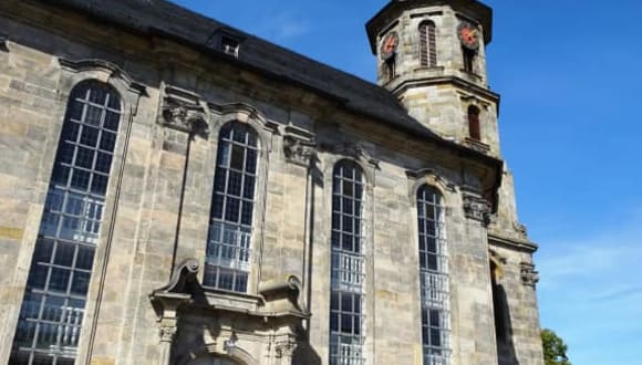 Zwischen Kulmbach und Bayreuth findet man in Neudrossenfeld die imposante Markgrafenkirche zur Heiligen Dreifaltigkeit mit einer außergewöhnlichen Stuckdecke. Der Kanzelaltar ist typisch für die Markgrafenkirchen der damaligen Zeit. Für den Altar wurden viele umgestaltete Teile der Vorgängerkirche wieder verwedet. Sie bietet Platz für 800 Personen . In einer der ehemaligen Adelslogen ist eine weitere Besonderheit:die sogenannte Kinderloge.In ihr können sich kleine Kinder mit ihren Eltern aufhalten. Sie ist täglich ab 10 Uhr geöffnet -ein Besuch ist sehr lohnenswert.