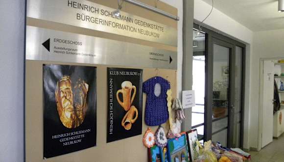 Die Heinrich-Schliemann-Gedenkstätte ist in Neubukow, einer Kleinstadt zwischen den Hansestädten Rostock und Wismar im Nordwesten des Landkreises Rostock beheimatet. Die Anfänge der Heinrich-Schliemann-Gedenkstätte entstanden im Anschluss an die Ehrungen zum 150. Geburtstag des Sohnes der Stadt. Das ehemalige Gemeindehaus der evangelisch-lutherischen Kirchgemeinde wurde aufwendig restauriert und in das umgebaute, unter Denkmalschutz stehende Bürgerhaus „Am Brink 1“ zog die Gedenkstätte ein. Große Grafiktafeln und Fotos berichten über das Leben von Schliemann, von der Kindheit bis zu seinem Tod am 26. Dezember 1890 in Neapel. Besonders gewürdigt werden Schliemanns Ausgrabungen in Troja, Mykene, Orchmenos und Tiryns. Die Gedenkstätte kann barrierefrei besichtigt werden, weitere Einzelheiten und die Öffnungszeiten sind den Internetseiten zu entnehmen. Am Brink 1 18233 Neubukow Tel: +49(38294)16690 Fax: +49(38294)16696 E-Mail: schliemann-neubukow@gmx.de http://www.neubukow.de http://www.mv-travel.de/kultur/schliemann-gedenkstaette.html