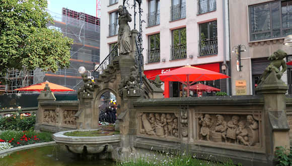 Der Heinzelmännchenbrunnen befindet sich in einer Grünanlage, Am Hof. Es ist ein toller Brunnen, aus dem 19. Jh. mit Skulpturen zu Ehren der fleißigen Helfer aus der Kölner Sage. Gestaltet wurde er im neugotischen Stil. Schöne Reliefplatten befinden sich links und rechts am Brunnen. Der Mittelteil ruht auf einem dreibeinigen Sockel. Unter dem Sockel ist das Wasserbecken angelegt. Adresse: Am Hof 12-14, 50667 Köln Geodaten: WXQ4+XW Köln