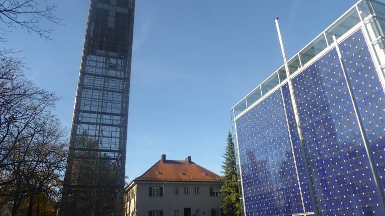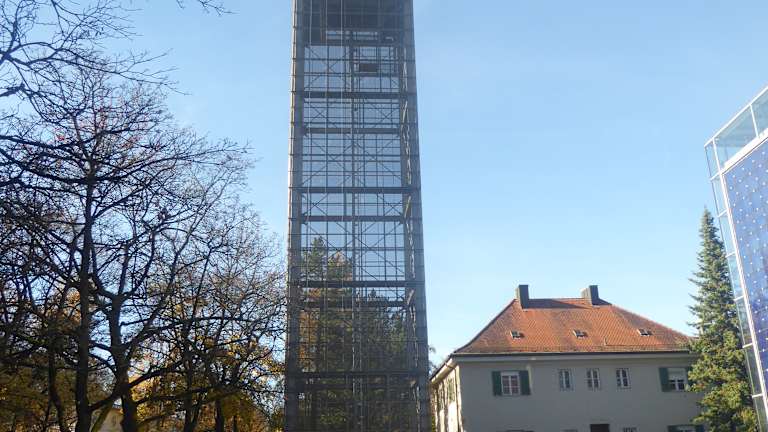 Der moderne, quaderförmige Sakralbau "Herz-Jesu-Kirche" befindet sich im Münchener Stadtteil Neuhausen. Das Gotteshaus wurde zwischen 1997 und 2000 anstelle der bei einem Brand im Jahr 1994 zerstörten Vorgängerkirche nach den Plänen des Münchener Architekturbüros Allmann/Sattler/Wappner errichtet. Einzigartig ist die Konstruktion der äußeren Hüllform aus Stahl und blauem Glas, die einen inneren hölzernen Kubus bekleidet, ohne mit diesem verbunden zu sein. Der 37 Meter hohe Glockenturm steht frei. Das 14 Meter hohe Portal im Süden lässt sich vollständig öffnen. Das Tor zieren Quadrate mit Nagelmustern des Glaskünstlers Alexander Beleschenko, die sowohl die Passionsgeschichte als auch die Keilschrift des Zweistromlandes symbolisieren. Mittelpunkt und Fixpunkt des liturgischen Raumes ist der Altar; die Bereiche und das Altarpodest herum sind variabel, den jeweiligen Messfeiern angepasst nutzbar. In der Kirche finden häufig Konzerte und Ausstellungen statt. Homepage: https://www.erzbistum-muenchen.de/Pfarrei/Herz-Jesu-Muenchen/cont/84973