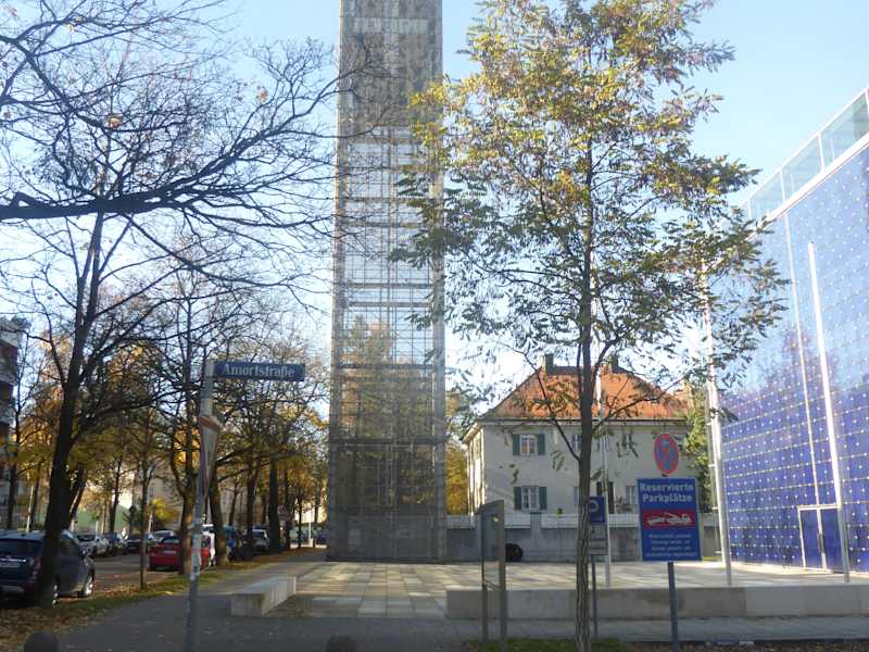 Die katholische Herz-Jesu-Kirche befindet sich in der Lachnerstraße in der Nähe vom Rotkreuzplatz im Stadtviertel Neuhausen. Die Herz-Jesu-Kirche zählt zu den modernsten Kirchen in München. Im Jahr 1994 wurde die Vorgängerkirche durch einen Brand vollständig zerstört. Mit Hilfe von Spenden wurde die Kirche nach einem Entwurf eines bekannten Münchner Architektenbüros in den Jahren 1997 – 2000 neu gebaut. Am 26.November 2000 wurde das Gotteshaus von Kardinal Friedrich Wetter eingeweiht. Die Namensgebung von Kirchen nach dem „Herz Jesu“ ist in der katholischen Überlieferung weit verbreitet und bedeutet, dass diese Gotteshäuser dem Heiligsten Herzen Jesu geweiht sind. Die Kirche hat das größte Kirchenportal der Welt. Das Kirchenportal ist 14 Meter hoch,18 Meter breit und 50 Tonnen schwer. Das riesige zweiflügelige Tor wird laut eines Berichtes im Internet nur an hohen Feiertagen vollständig geöffnet. Die Kirche betritt man durch zwei kleine Türen im Hauptportal. Das Inventar in der Herz Jesu Kirche ist nach meiner Ansicht sehr einfach gehalten. Der Kirchenraum ist ein zentraler, rechteckiger Raum, die Außenwände sind aus Glas. Im Inneren der Kirche befinden sich rechts und links in einem Abstand von 2 Meter Holzlamellenwände. Aufgefallen in der Kirche ist mir nur ein einziges farbiges Bild von der Muttergottes mit dem Jesuskind.. Sehr interessant war für mich auch die Orgel. Wie man in einem Kirchenprospekt nachlesen konnte. Ist einer der Schwerpunkte in der Herz-Jesu-Kirche die Kirchenmusik. Ungewöhnlich fand ich in der Kirche den modernen Kreuzweg. Zwischen der Glasfassade und der hölzernen Stellwand entstand dieser außergewöhnliche Kreuzweg, Die 14 Stationen zeigen fotografisch den „klassischen Kreuzweg“, die Via Dolorosa in Jerusalem im Heiligen Jahr 2000. Die Via Dolorosa ist ein Prozessionsweg in der Altstadt von Jerusalem, der altüberliefert mit dem Leidensweg Jesu nach der Kreuzigung verbunden ist. Der Kirchturm der Herz-Jesu-Kirche hat eine Höhe von 36,80 Meter. Die Herz Jesu Kirche ist ein Musterbeispiel für moderne Sakralarchitektur.