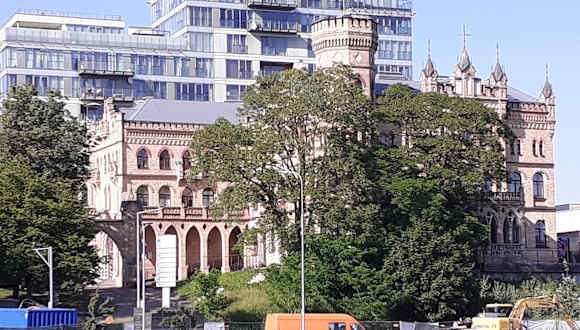 Der Palast von Hilary Raduszkiewicz, einem Arzt aus Vilnius, steht am nördlichen Ufer der Neris und ist eingerahmt von hoch aufragenden modernen Gebäuden. Der neo-gotische Palast aus dem 19. Jahrhundert ist ein Zeugnis des reichen kulturellen Erbes und der architektonischen Schönheit der Stadt. Das historische Wahrzeichen gegenüber der Kirche des Erzengels Raphael zeigt ein exquisites Design in der eleganten Fassade.