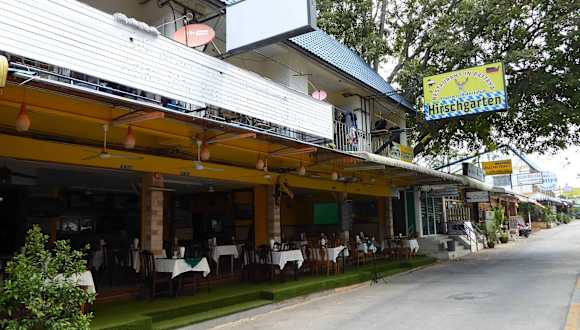 Wenn man länger in thailand ist und man mal wieder zwischendurch was heimisches essen möchte ist man im hirschgarten genau richtig. die sehr nette bedienung serviert schmackhafte und reichhaltige speisen zu absolut fairen preisen. ausserdem sprechen sie zum teil deutsch.