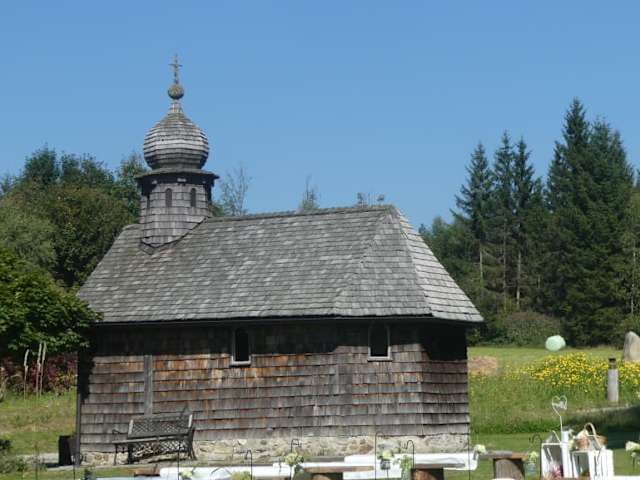 Kurz unterhalb vom Gipfel vom Harlachberg, der Harlachberger Spitze, befindet sich die historische Privatkapelle der Gutsalm Harlachberg. Diese Kapelle wurde vermutlich 1747 erbaut und sie wurde 1999 renoviert (Einweihung 2000). Die Kapelle ist mit dunklen Schindeln verkleidet und auf dem Dach hat sie einen Glockenturm, ebenfalls mit dunklen Schindeln verkleidet. Umgeben von der wunderbaren Landschaft und mit einem tollen Ausblick von der Kapelle aus, hat die Kapelle am Harlachberg eine fantastische Lage. Aber auch ein Blick in diese kleine Kapelle ist lohnenswert. TIPP FÜR HEIRATSWILLIGE: man kann sich in der Kapelle am Harlachberg auch trauen lassen (oder auch im Freien vor der Kapelle) und man kann in der Gutsalm Harlachberg sein Hochzeitsfest feiern und auch übernachten.