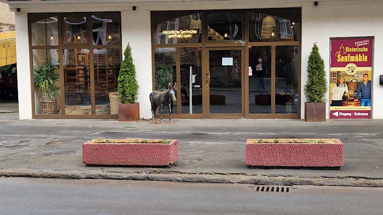 Die Senfmühle ist ja umgezogen, sie ist neu zu finden, unterhalb des Parkhauses. Die Türe wird erst um 10 Uhr für Besucher geöffnet. Ich musste vor der Senfmühle 20 Minuten warten, sitzend auf dem Blumentrog draussen, weil der Geschäftsführer den Eintritt verweigert hat. Zu guter letzt durfte ich dann doch meine 18 Senftöpfe kaufen und man hat mir auch ein Taxi bestellt, bravo. Die Bedienung war ok. Das Klima eher frostig, wahrscheinlich bedingt durch die neue Geschäftsführung. Nur zu empfehlen bei guten Nerven! Die Bockwurst ist auch teurer geworden, neu 2.50 Euro.