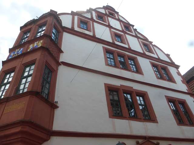 Am Marktplatz / Mainzer Gasse befindet sich das sogenannte Hochzeitshaus von Alsfeld. Es ist ein schönes Gebäude, das in der zweiten Hälfte des 16. Jahrhunderts als „Festhalle“ erbaut wurde. Hier wurden u.a. Hochzeiten gefeiert. Das Hochzeitshaus hat einen schönen eckigen Erker im 1. und 2. Stockwerk. Dieser Erker ist rot gestrichen und befindet sich an der Ecke zur Mainzer Gasse. Übrigens: im Erdgeschoss vom Hochzeitshaus befindet sich ein schönes Café mit Sitzmöglichkeiten auch im Freien.
