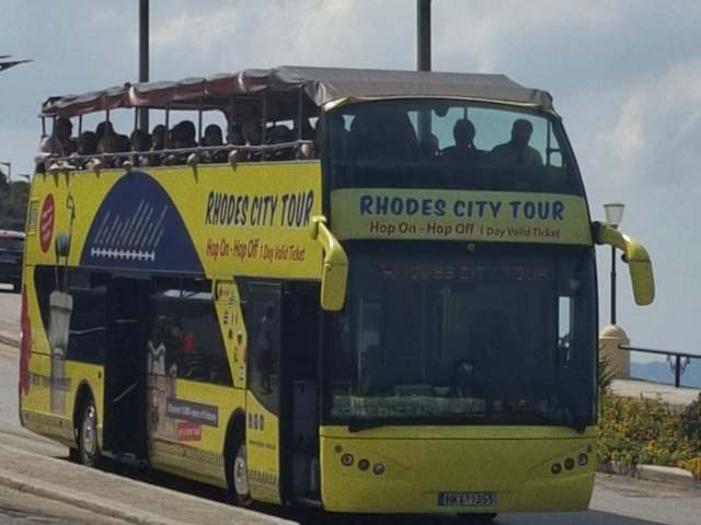 Wenn Ihr mit der Fähre oder dem Kreuzfahrtschiff in Rhodos Stadt ( Hafen ) ankommt, oder in Rhodos Urlaub macht bietet sich zum kennenlernen von Rhodos Stadt der Hop on Hop off Bus an. 12 Haltestellen werden angefahren, eine ist direkt am Ausgang des Hafens. Die Fahrt dauert 60 Minuten, es wird an der Küste entlang gefahren, man hat tolle Blicke auf die Hotels und Strände, Altstadt, Grossmeisterpalast, wird ebenfalls gehalten. 24 Stunden Nutzung kosten faire 12€ man kann beliebig ein und aussteigen.