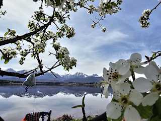 Der Hopfensee bei Füssen ist ein mit 10 Meter Tiefe recht flacher See. Dei hat einen Umfang von 6,8 Kilometer und ist für den Tourismus und BAdebetrieb gut erschlossen. Hier wird zudem auch Windsurfen betrieben und man findet hier einen guten Campingplatz.