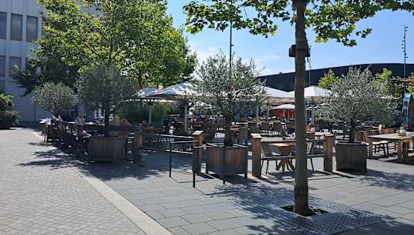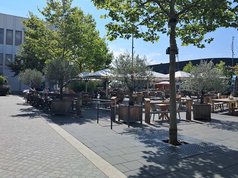 Der Hugo-Boss-Platz mit Cafe und Restaurant liegt mitten im Outlet und ist für uns eine Weiterempfehlung wert!