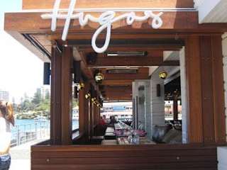 Ein In-Place in Manly, immer ausgebucht und überfüllt. Am besten recht früh hingehen oder reservieren. Sehen und gesehen werden an der Manly Wharf. http://www.hugos.com.au/