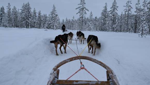 während der Hundeschlittenfahrt kann man die Natur geniessen - ein einzigartiges Erlebnis