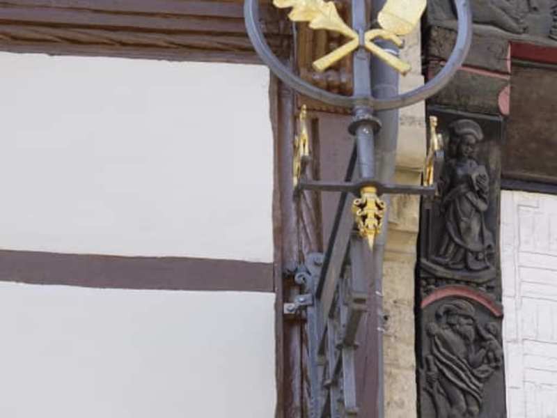Es gibt am Burgplatz 2a zwei Häuser, die von unterschiedlichen Erbauern als Fachwerkhäuser im Spätmittelalter erbaut wurden. Es sind die Häuser Huneborstelsches Haus sowie das Veltheimisches Haus. Heutes sind diese Häuser zusammen gezogen und beherbergen die Handwerkskammer Braunschweig. Steht man vor den beiden Gebäuden, kann man in der Mitte die Vebindung sehen. Das Bild welches man jetzt hier als Titelfoto sieht, zeigt nicht ganz das gesamte Gebäude, da sind meine Bilder shon etwas Aussagekräftiger. Interessant ist der Werdegang des Huneborstelschen Hauses. Das stand früher woanders, man mußte aus Gründen der Stadtentwicklung das frühere Haus abreissen, aber die Fassade hat die Stadt aufgekauft, sowie das Dach. Diese Fassade wurde dann an ein neu erbautes Haus vormontiert, ebenso wie das Dach. Leider wurde das Haus bei dem Bombardement 1944 etwas beschädigt, man baute die Fassade wieder ab und lagerte sie aus. Dabei wurde die Auslagerungstätte später in die DDR eingegliedert, sodaß die Fassade erst im Jahr 1955 wieder nach Braunschweig zurück kam. Man setzte die Fassade dann wieder in des Haus ein, wo sie schon einmal stand. Sicher hat man sich mit den beiden Fachwerkhäusern viel Arbeit gemacht, aber wer die historischen Dinge weiterzeigen möchte, der denkt einfach an nachfolgende Generaionen.