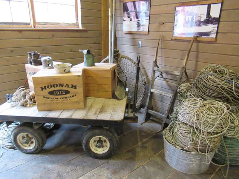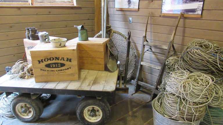 Ice Strait Point, nahe dem Städtchen Hoonah ist eine Anlegestelle für Kreuzfahrtschiffe, die mitten in die Natur gebaut wurde. Direkt nahe der Anlegestelle findet Ihr das Icy Strait Museum. Der Eintritt ist frei, in das Museum sind einige Geschäfte mit den üblichen Touristensouvenirs eingebaut, so wird dann das Geld verdient. Das Museum selbst ist sehr interessant, es wird der Fischfang und die Fischverarbeitung vor 50 Jahren gezeigt, Maschinen zur Zerlegung der Fische, Öfen zum Herstellen der Fischkonserven etc. Auch wie die Fischer lebten ist auf vielen Bildern zu sehen. Man hat hier einen Erlebnishof für Kreuzfahrtgäste geschaffen, alles aus einer Hand, Wifi ist für eine Stunde gratis und auch sehr schnell.