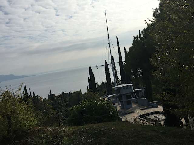 Das Vittoriale ist ein Museum in Gardone. (http://www.vittoriale.it) Es ist der ehemalige Wohnsitz des phantasievollen italienischen Schriftstellers Gabriele D’Annunzio (1863–1938), der das Anwesen 1921 unter Leitung des Architekten Giancarlo Maroni gestalten ließ. Das Gelände besteht aus dem Wohngebäuden und einem Freilichttheater, sowie aus Gärten, Parks, und Wasserläufen. Auf dem Grundstück befindet sich auch das Mausoleum von D’Annunzio. Besonders beeindruckt hat mich die Puglia, ein Marinekreuzer, der mitten im Garten platziert ist. Eintritt 16 Euro