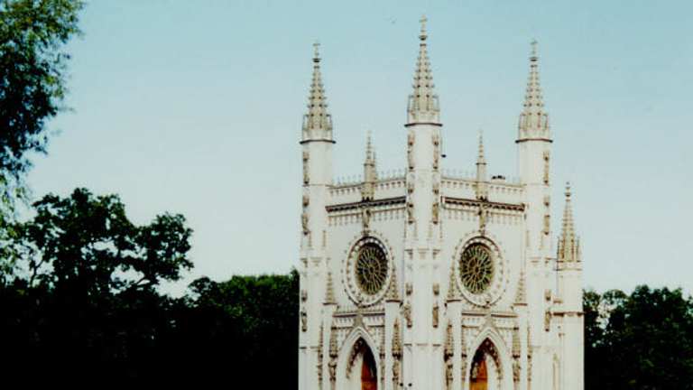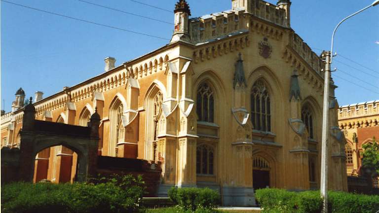 Vielleicht wollen Sie ja noch einen Tag in Peterhof verbringen, dann lohnt es sich, den bei Touristen wenig bekannten Alexandria Park zu besuchen. Er ist ganz leicht zu finden: Sie gehen aus dem östlichen Eingang des Fontänen-Parks heraus und gehen immer in Richtung Osten an der Einzäunungs des Parks entlang. Zuerst spazieren Sie an der langgestreckten Front der Fräuleinshäuser vorbei, wo früher die adligen Hofdamen wohnten; heute ist hier das Benois-Museum und ein Hotel (Werfen Sie doch bitte einen Blick auf die wunderschönen Fenster!). Dann kommen Sie zu den sogenannten Gotischen Häusern, einst Gästehäuser der Zaren für hochrangige Besucher. Und dann -- stehen Sie etwas verblüfft vor einem gewaltigen Gebäude aus rotem Backstein mit unzähligen Zinnen, Türmen und Türmchen. Das war nicht etwa eine mittelalterliche Festung oder Ritterburg, sondern nur der Pferdestall der Zaren, im romantisierenden Stil seiner Zeit gebaut vom Architekten N. L. Benois, der auch das Ritterburg ähnliche Bahnhofsgebäude Peterhofs entworfen hatte. In diesem Marstall war Platz für 328 Pferde gewesen, dazu gab es Wohngebäude für die Arbeiter und Handwerker, dazu Baracken für die Kutschen etc. etc. Die riesige „Manege“ mit einem berühmten hölzernen Schnitzwerk als Dachverstrebungen dient heute als Speisesaal eines Sanatoriums. So, nun sind Sie am Tor zum Alexandria Park angekommen. Hier muss man keinen Eintritt zahlen. Zar Nikolaus I. schenkte den Park samt einem neuerbauten Land-Schlösschen „Cottage“ seiner Gemahlin Alexandria; daher kommt der Name des Parks. Der Gartenarchitekt Peter Erler plante den passenden Landschaftspark dazu. Die kaiserliche Familie verbrachte die Sommerzeit meist in dem ruhigen Cottage und benutzte den Großen Palast nur für offizielle Empfänge oder große Bälle. Der Besuch des Cottage kostet heute Eintritt, ist jedoch wirklich sein Geld wert. Die zauberhafte Einrichtung im englischen (neogotischen) Stil mit vielen kostbaren Möbeln, Gemälden, Geschirr und Vasen ist sehenswert, wie auch die herrliche „Gotische Treppe“ im Innenhaus. Eine Statue im Vorgarten des Cottage erinnert an den ermordeten Zarevich. Der bluterkranke Junge hatte einst darum gebeten: “Wenn ich sterbe, stellt für mich ein kleines Steindenkmal in den Park.“ Bevor Sie jedoch das Cottage erreichen, sehen Sie links die verspielte neogotische Alexander-Newsky-Kapelle, die nach einem Entwurf des Deutschen K.-F. Schinkel gebaut wurde. Der (kostenpflichtige) Besuch des Kapellen-Inneren lohnt sich nicht. Auf der rechten Seite wird gerade der Farmerpalast restauriert. Seine Restauration war 2006 fast abgeschlossen gewesen, da machte ein Brand alle Arbeit zunichte. Nun wird erneut am Ausbau gearbeitet. Von hier aus können Sie gemütlich weiter spazieren, an einer - künstlichen - Ruinen-Brücke mit gewaltigen Urnen vorbei. Sie entdecken vielleicht die hübsche (natürlich auch neogotische) Brunnenumfassung aus Schmiedeeisen und dann am Ufer des Finnischen Golfes ein großes Trümmerfeld: Hier stand einst die „Untere Datscha“, auch „Neues Landhaus“ genannt. Das war der Wohnsitz des letzten russischen Zaren Nikolaus II. gewesen und hier wurde auch der letzte Zarevich geboren. Von den Überresten der Unteren Datscha aus können Sie noch nach links zum ehemaligen Jachtclub des Zaren gehen; hier ist heute die Seenot-Rettungsstelle Peterhofs untergebracht. Oder Sie gehen wieder (direkt nach Süden) hinauf, bis Sie zum kleinen (neogotischen) „Haus mit den Löwen“ kommen. Es diente zur Zarenzeit als Wachhaus zur streng bewachten Einfahrt in den Alexandria Park. Es gab sogar eine Gefängniszelle für solche, die sich ohne gültige Papiere Einlass verschaffen wollten. Vom Haus mit den Löwen aus können Sie den nächsten Bus zurück nach Peterhof nehmen.