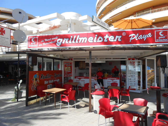 Entlang der Bucht von Palma findet man diverse Niederlassungen vom Imbiss Grillmeister (Wurstmeister). Man bekommt bei Grillmeister u.a. die liebgewonnene Bratwurst und Currywurst. Das Logo vom Grillmeister ist ein rotes Schild mit einer weißen Wurst (eine Fleischwurst???) und der Beschriftung „grillmeister“ bzw. „wurstmeister“.