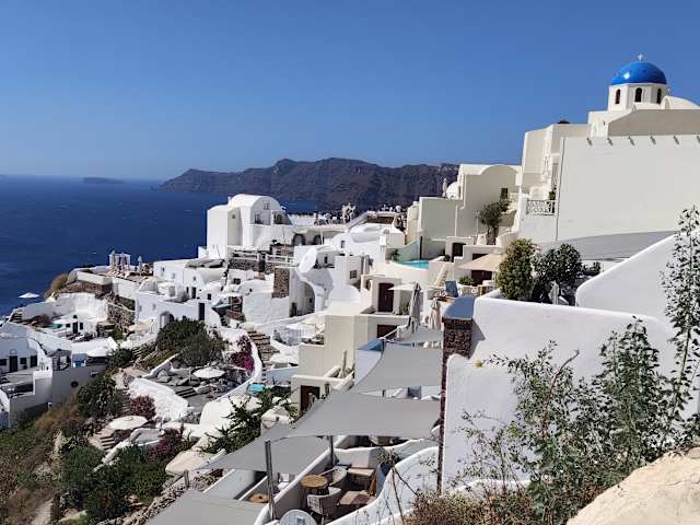 Mir Santorin vernbindet man Schönheit und einen Traumurlaub...wenn man noch nicht dort war Leider ist es in Wirklichkeit, an jeder Ecke, meist nur Abzocke und dreckig, aber man zahlt für den Namen Teure Restaurants und vor allem Taxis ( 1 km kostet mind 10 € auch am Land ) Busse sind zwar günstiger, aber typisch im Mittelmeerraum, fahren irgendwann, NICHT nach Plan und irgendwohin Ausserhalb der Orte vermüllt und verdreckt Wanderwege, das war der größte Witz...Steine so groß wie Fußbälle, als Wegebaumaterial / Löcher 50cm tief ganz normal Panoramastiege haben wir gleich umgetauft in Pinkelstiege / Kotstiege Nach der 2. Kehre bekommt man keine Luft mehr...vollgepinkelt und Kot der Esel überall, wird offensichtlich nie gereinigt Die Seilbahn kann man aufwärts fast nicht nutzen, da Wartezeiten von 2-3 Stunden. Denn dort landen die Kreuzfahrtschiffe an, und spucken permanennt tausende Touristen auf einmal aus..laufend Es wird nur Geld gescheffelt, aber von der Gemeinmde nichts reinvestiert Die Ortskerne sind schön und sauber Aber 1x um die Ecke gehen, ist es vorbei Da wir am Saisonende dort waren, hat keiner mehr wirklich Bock auf Touristen, egal welche Institution