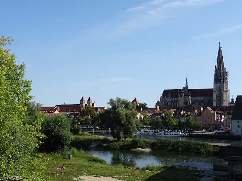 Die Jahninsel in der heutigen Form gibt es noch nicht so lange. Diese entwickelte sich offenbar durch den Bau der Steinernen Brücke und die Nutzung bzw. Ablagerungen von Sedimenten. Eine separate Sehenswürdigkeit? Vielleicht nicht unbedingt. Man kommt hier aber automatisch vorbei wenn man die Steinerne Brücke besichtigt. Von hier hat man einen schönen Blick Richtung Altstadt/ Dom.