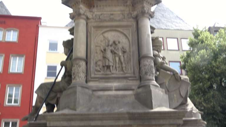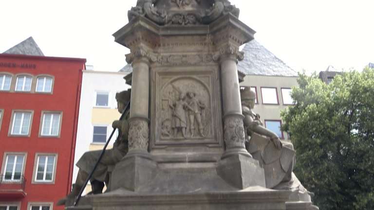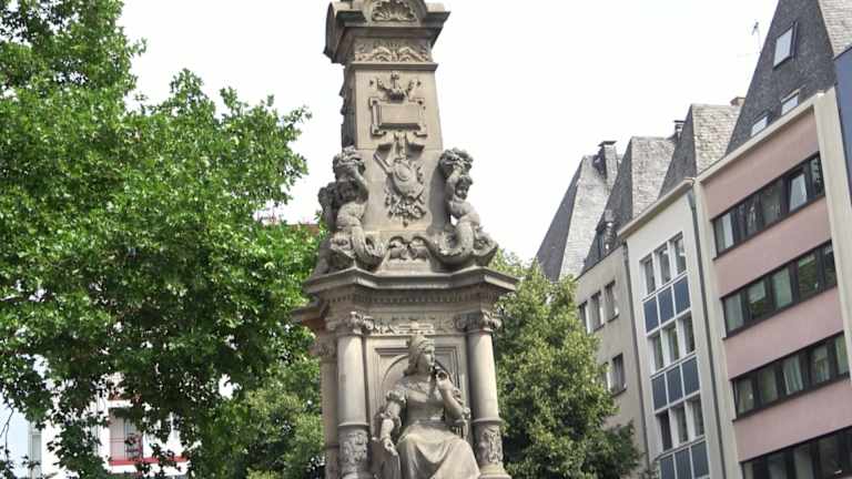 Der Jan-von-Werth-Brunnen steht auf dem Alter Markt in Köln. Er wurde 1884 erbaut. Der Brunnen hat drei Hauptteile. Stufen und ein Sockel mit Wasserbecken, jeweils zwei große auf der Vor- und Rückseite, bilden den unteren Teil. Links und rechts sind jeweils zwei kleinere Becken durch drei Stufen zugänglich. Am Fuße des Sockels befinden sich allegorische Statuen der Kölner Bauer und der Kölner Jungfrau, die für Tapferkeit und Reinheit stehen. In der Mitte des Brunnens steht die Statue von Jan von Werth. Er war ein erfolgreicher General im Dreißigjährigen Krieg- Adresse: Alter Markt 38, 50667 Köln Geodaten: WXQ6+C2 Köln