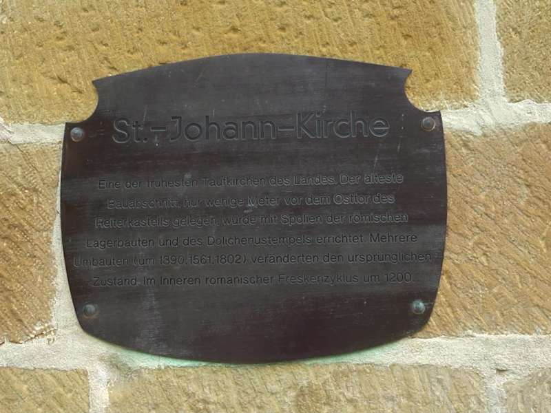 Die Kirche ist nach Johannes dem Täufer benannt - sie soll zu den ältesten Kirchen in Württemberg zählen. Die evangelische Kirche befindet sich wohl direkt vor der Stelle, an welcher früher einmal das Osttor des ehemaligen Römerkastells stand.
