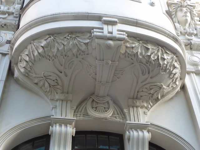 Um die 800 Jugendstil-Häuser soll es in der 800 Jahre alten Stadt Riga geben. Der Besucher Rigas (Tourist) bekommt davon in der Regel nur die der Straße zugewandte Häuserfassade zu sehen. Einige dieser Häuserfassaden wurden uns auf unserer einwöchigen Reise durchs Baltikum in zeitlich begrenztem Rahmen einer kleinen Stadtführung durch die Neustadt Rigas gezeigt. Die Neustadt in Riga wird lettisch mit „Centrs“ bezeichnet. Unser Reisebus hielt am Kronvalda Park in der Straße Kalpaka bulvaris, also dem Kalpaka Boulevard. An der Kreuzung zur Elisabeth-Straße (Elizabetes iela) wurden wir in die Strelnieku iela, dann in die hier abzweigende Alberta iela geführt, die in die Antonijas iela mündet, welche wiederum die Elisabeth-Straße kreuzt. Diese vier Straßen begrenzen in der Form eines Trapezes eine mit Wohnhäusern bebaute Fläche. In der Strelnieku Straße gibt es mit der Hausnummer 4A berühmtes, restauriertes Jugendstil-Haus, das durch blaue Backsteine ab der zweiten Etage hervorsticht. Vor diesem Haus befindet sich auch eine Büste für Džordžs Armitsteds (englische Schreibweise: George Armitstead), einem der prominentesten Bürger und Bürgermeister der Stadt Riga aus der Zeit des Jugendstils. Das Nachbar-Jugendstilhaus zur Linken war gerade eingerüstet, hier erregten waghalsige Bauarbeiter, die schwindelfrei und ungesichert in großer Höhe nach oben gereichte Teile des Gerüsts entgegennahmen, mehr Aufmerksamkeit als die durch das Gerüst verdeckte Jugendstil-Fassade. Ein „Feuerwerk“ von Jugendstilfassaden bot sich uns in der nur ca. 200 Meter langen Alberta Straße. Sie mündet T-förmig in die Antonijas iela. Über sie wurden wir zur Elisabeth-Straße, Hausnummer 10b und dem auf der gegenüberliegenden Straßenseite gelegenen Jugendstil-Haus, Hausnummer 33 geführt. Das war wirklich nur ein kleiner Eindruck einer Wenigkeit der 800 Jugendstilhäuser in Riga. Wer sich für Jugendstil-Häuserfassaden begeistern kann, sollte sich auf jeden Fall mindestens einen halben Tag für das Aufsuchen und Bestaunen der Jugendstil-Fassaden nehmen.