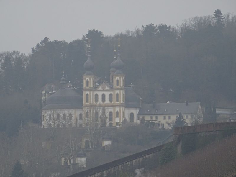 Die von Balthasar Neumann errichtete Wallfahrtskirche liegt außerhalb der Innenstadt auf der anderen Flußseite auf einer Anhöhe. Interessant sind die Bezeichnungen einiger Wege um die Kirche wie z.B. Kniebreche oder Leutfresserweg. Die Wallfahrtskirche sieht man von verschiedenen Standorten in der Altstadt oder auch der Alten Mainbrücke sehr gut.