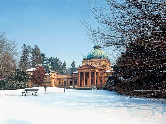 Das "Kaiser-Wilhelms-Bad", früher als "Fürstenbad" bekannt, befindet sich inmitten des Bad Homburger Kurparks in der Nähe der Spielbank und des Elisabethenbrunnens. Das Gebäude wurde zwischen 1887 und 1890 nach den Plänen des Homburger Baumeisters Louis Jacobi im Stil der italienischen Hochrenaissance als Therapiehaus errichtet. Besonders auffallend ist die große Eingangsrotunde. Im Innern wird es von weiten und hohen Räumen, die mit kostbaren Fliesen und Mosaiken ausgestattet sind, geprägt. Neben dem darin ansässigen Kur Royal Day Spa dienen die Räumlichkeiten als Verwaltungssitz der Kur- und Kongreß-GmbH. Vor dem Eingang des Kaiser-Wilhelms-Bads befindet sich eine 3,50 Meter hohe, von dem Künstler Fritz Gerth geschaffene Bronzestatue von Kaiser Wilhelm I. Homepage: https://www.bad-homburg.de/de/erleben/entdecken/kurpark/kaiser-wilhelms-bad
