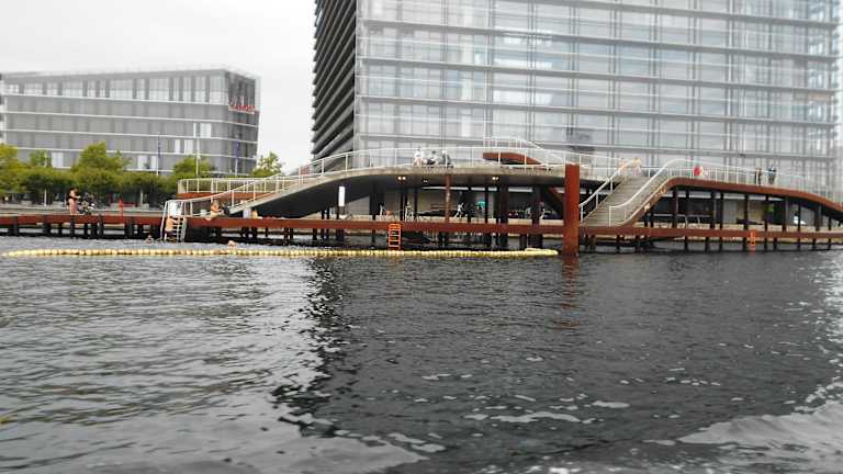 Die wellenförmigen Stege, die südlich von der Langebro auf Stelzen am Ufer entlangführen, sind ein kleiner Erholungsraum auf dem Wasser in der ansonsten von nüchternen Büro- und Hotelbauten dominierten Gegend. Kalvebod Bølge ist ein maritimer Park, in dem sich urbanes und maritimes Leben treffen. Die Pontons bieten die notwendigen Einrichtungen für verschiedene wasserbezogene Aktivitäten.