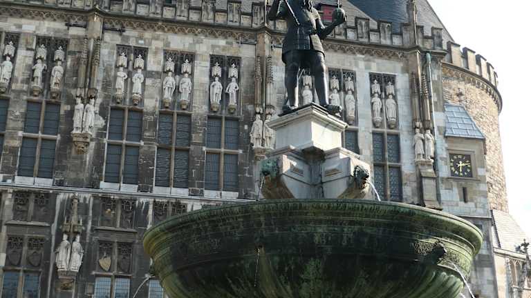 Aachen und Karl der Große sind fast Synonyme – die Stadt ist nicht ohne den Kaiser und der Kaiser nicht ohne die Stadt denkbar. Der im 17. Jahrhundert errichtete und dem Kaiser gewidmete Brunnen vor dem Rathaus ist eine passende Ehrenbezeugung für den großen Europäer Karl.