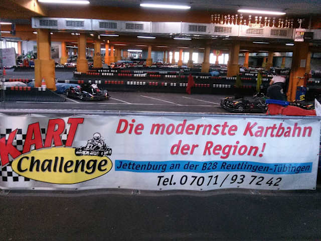 Eine tolle und bisher jedes Jahr wechselnde Strecke in einer Halle. Hierbei fährt man nicht auf glattem Beton, sondern auf einem angerauten Belag, sodass Grip vorhanden ist und die Zeiten besser gejagt werden können. Laut Homepage ist die Strecke seit Oktober 2010 mit einem neuen Streckenlayout versehen worden, ich bin noch die alte Strecke gefahren (siehe Streckenversionen jeweils auf deren Webseite) Die Karthalle ist etwas versteckt und man verfährt sich meist beim ersten Mal auf der Suche danach. Es macht aber sehr viel Spaß, die Strecke ist ja überdacht und damit saisonunabhängig. Einziger Minuspunkt wie bei jeder Kartbahn ist der Kostenfaktor ( 10 Min. = EUR 12,-) http://www.kart-challenge.de