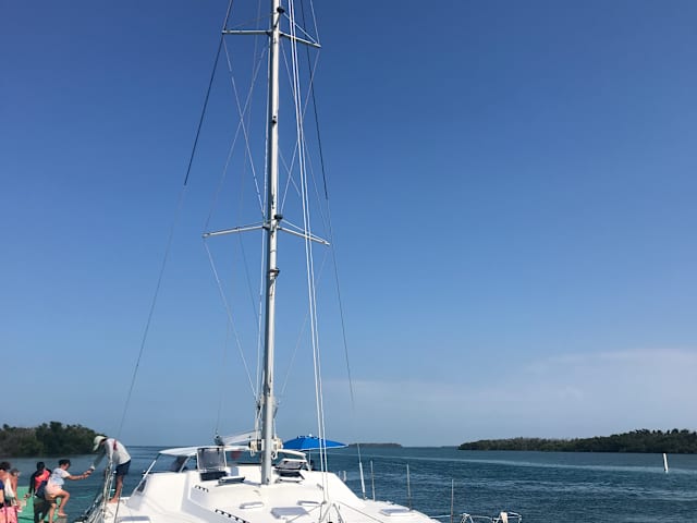 Mit dem Katamaran nach Cayo Blanco