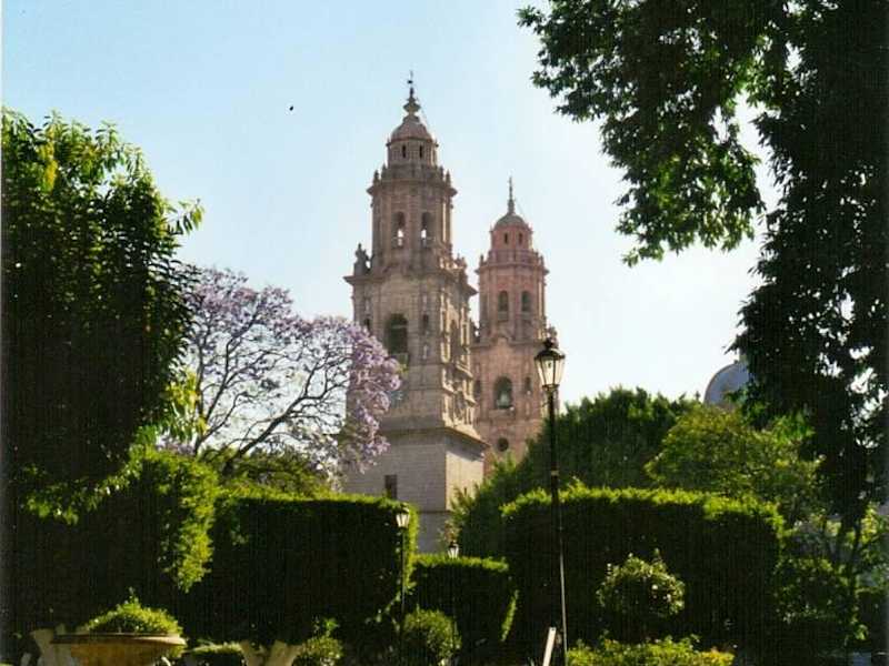 Die Kathedrale von Morelia liegt im Osten der Plaza de Armas im historischen Zentrum der Stadt. Das Gotteshaus wurde zwischen 1660 und 1744 nach den Plänen des italienischen Architekten Vicencio Barroso in einer Mischung aus barocken und neoklassizistischen Stilelementen in Form eines lateinischen Kreuzes errichtet. Architektonisch ähnelt das Bauwerk den Kathedralen von Mexico-Stadt, Puebla und Guadalajara. Es ist die einzige Kathedrale Mexicos, die nicht nach Osten ausgerichtet ist, sondern nach Norden. Die mit Skulpturen (San Pedro, San Pablo, San Juan Bautista, San Miguel Archangel, Santa Agueda und Santa Rosa de Lima) und Reliefs verzierte Fassade wird von den beiden fast 70 Meter hohen Glockentürmen gesäumt. Sie und die mit Fliesen belegte Hauptkuppel prägen noch heute die Silhouette der Stadt. Die Innentüren der Kathedrale sind mit kunstvoll bearbeitetem Leder überzogen und erinnern an den andalusischen Stil. Sehenswert ist die am Anfang des 20. Jahrhunderts in Deutschland gebaute und in das Gehäuse des ursprünglichen Instruments aus dem 18. Jahrhundert eingepasste Orgel. In der Sakristei kann man Gemälde aus dem 16. Jahrhundert, chinesische Vasen und eine Christusfigur sehen, die im 16. Jahrhundert mit einer prähispanischen Technik aus Maisbrei und Honig gefertigt wurde. Im Jahr 1956 wurde das Gebäude zum nationalen historischen Monument erklärt.