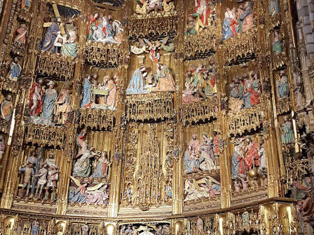 Die "Catedral de Santa María de la Asunción de Toledo", auch als "Santa Iglesia Catedral Primada de Toledo" bekannt, steht an der Ostseite der Plaza del Ayuntamiento im historischen Zentrum von Toledo. Das Gotteshaus wurde zwischen 1227 und 1493 auf Initiative von König Ferdinand III nach dem Vorbild der Kathedrale von Bourges in Form eines lateinischen Kreuzes anstelle einer von den Mauren als Moschee genutzten alten Kirche im gotischen Stil errichtet und gilt als ein Hauptwerk der spanischen Gotik. Durch die lange Bauzeit sind aber auch Einflüsse des Mudéjar, der Renaissance und des Barock erkennbar. Die charakteristischsten architektonischen Elemente sind zwei Türme, die in völlig unterschiedlichen Stilen errichtet wurden. Das 120 Meter lange und 60 Meter breite Sakralgebäude hat fünf Schiffe, deren Gewölbe von 88 großen Säulen getragen werden, und eine Vierung. An den Seitenschiffen befinden sich zahlreiche Kapellen. Zur Beleuchtung dienen mehr als 750 Buntglasfenster aus dem 15. und 16. Jahrhundert. Kunsthistorisch bedeutsam ist das zwischen 1497 und 1504 von Rodrigo Alemán, Vigarni, Egas und Pedro Gumiel mit lebensgroßen polychromen Holzskulpturen gestaltete Altarretabel der Hauptkapelle. Es besteht aus fünf Teilen, die Szenen aus dem Neuen Testament darstellen. Sehenswert sind die monumentalen geschnitzten Tore. In der Sakristei befindet sich eine Gemäldesammlung mit Werken von El Greco, Goya, Rubens, Tizian, Van Dyck und Velázquez. Die Altstadt von Toledo, und damit auch die Kathedrale, wurde 1986 in die Liste des UNESCO-Weltkulturerbes aufgenommen. Homepage: https://www.catedralprimada.es/