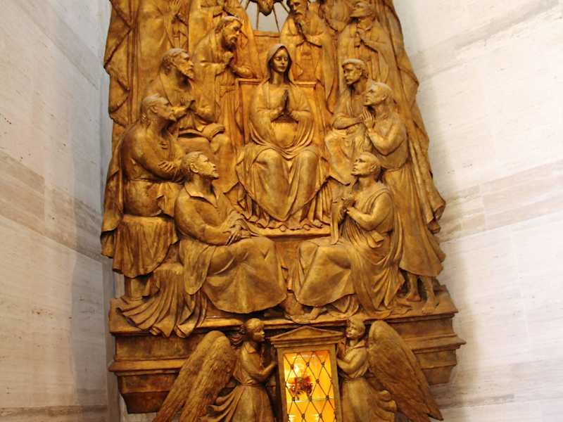 Nach unserem Spaziergang im Kulturviertel Civis Center fuhren wir weiter zur Mariä Himmelfahrt Kathedrale. Die Kathedrale Mariä Himmelfahrt in San Francisco befindet sich auf dem Cathedral Hill. Der Grundstein für die jetzige Kathedrale wurde am 13. Dezember 1967 gelegt und am 5. Mai 1971 folgte die Weihung der Kirche. Das Gotteshaus ist die bereits die dritte Kathedrale des Erzbistums San Francisco. Die älteste - Alte Sankt Marien Kirche - ist noch immer in Kalifornien, an der Grant Street, am Rand zu Chinatown zu sehen. Diese Alte Sankt Marien Kirche (Weihung 1854) wurde nach wenigen Jahrzehnten zu klein. Aus diesem Grund entstand die zweite Kathedrale von 1887 bis 1891. Diese Kathedrale erhielt den heutigen Namen. Das Gotteshaus wurde am 7. September 1962 durch eine Brandstiftung vollständig zerstört. Die neue Kathedrale ist 57,9 m hoch und wird von einem goldenen Kreuz von 16,7 m Höhe gekrönt. Die vier Eckpfeiler tragen die 19 Stockwerke hohe Kuppel und ragen 27 Meter in das Gestein, um der Konstruktion einen festen Halt zu geben. Der Bau dieser modernen Kirche ist einer Bischofsmütze nachempfunden. Die futuristischen Formen der Kathedrale werden unterschiedlich von den Bewohnern von San Francisco gesehen. Wie so oft stößt moderne und neue Architektur bei einigen Menschen auf Unverständnis. Die Kirche bietet Platz für 2.500 Menschen. Drei Gruppen von Bankreihen sind auf den leicht erhöhten Altar ausgerichtet, den sie von vorne, links und rechts umgeben. Sehenswert sind in der Kirche der Baldachin, ein riesiges Mosaik, die Glasmalereien und das 42 m hohe Kruzifix. Papst Johannes Paul II. zelebrierte während seines USA-Besuchs 1987 in der Kathedrale eine heilige Messe. Im Gotteshaus befindet sich auch ein Bild vom jetzigen Papst Francisco. Sehenswerte Kirche in San Francisco.