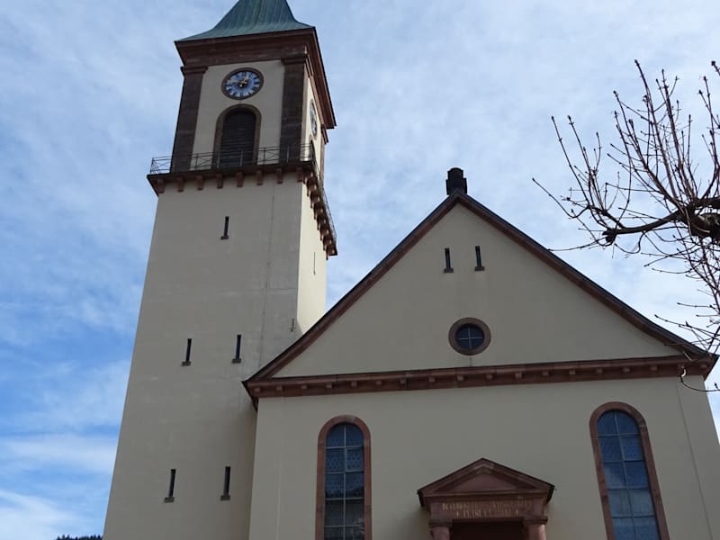 An der Stelle der heutigen Kirche stand bereits eine kleine Kapelle. Sie wurde erstmals 1293 erwähnt. Die heutige Kirche war bis ins 19. Jahrhundert dem Apostel Petrus geweiht, dann kam Paulus dazu. Die Kirche wurde 1808 erbaut, 1927 wurde sie erweitert. Der Stil der Kirche ist der Klassizismus. Der Glockenturm steht seitlich vom Langhaus, der Haupteingang wird durch Säulen und Dreiecksgiebel betont. Im Inneren ist die Handschrift der Prämonstratensermönche des Kloster Allerheiligen zu sehen. Aus dem Kloster kamen auch drei Altäre nach der Säkularisation in die Kirche. Adresse: Schwarzwaldstraße, 77740 Bad Peterstal-Griesbach Webseite: https://www.bad-peterstal-griesbach. de/de/poi/kirche/katholische-pfarrkirche-st.-peter-paul/3524712/ Geodaten: C6H4+RW Bad Peterstal-Griesbach