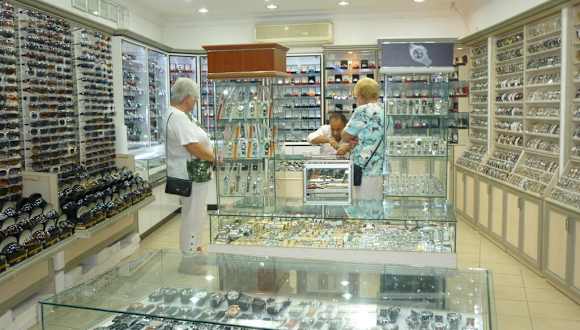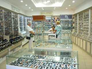direkt gegenüber vom KBR es sind zwei Läden nebeneinander mit Durchgang, sehr große Auswahl an Uhren und Sonnenbrillen