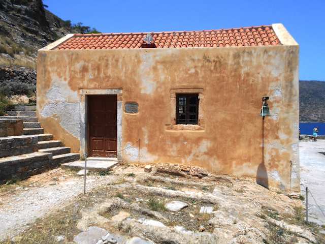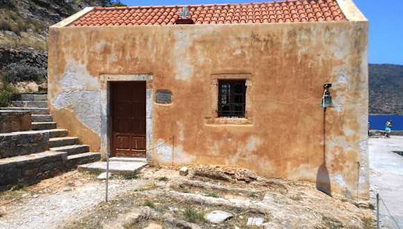 Die kleine Kirche auf der Ostseite der Insel Spinalonga wurde 1661 während der venezianischen Besatzung erbaut und diente zur Zeit der osmanischen Besatzung im 18./19. Jahrhundert als Wohnhaus. Zu Beginn des 20. Jahrhunderts wurde die Kirche restauriert und wieder ihrem ursprünglichen Zweck zugeführt, als hier eine Leprakolonie bestand. In der Nähe der Kirche ist der Friedhof der Leprakolonie. Während diente die Kirche als Wohnhaus.