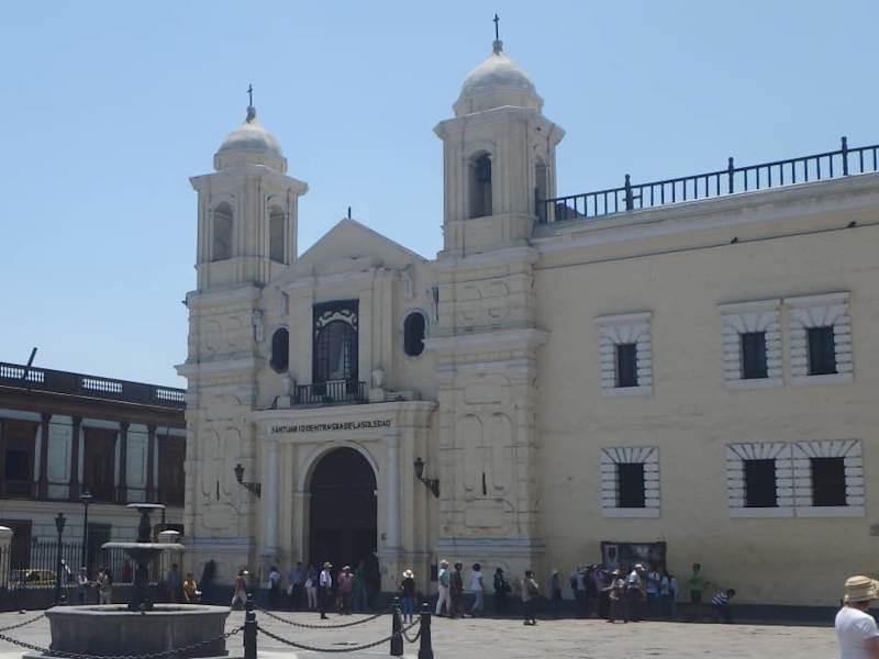 Die Wallfahrtskirche "Santuario de Nuestra Señora de la Soledad" liegt an der Plazuela de San Francisco unmittelbar neben dem Komplex "Kloster und Kirche San Francisco" in der historischen Altstadt von Lima. Mit dem Bau des ersten Gotteshauses an diesem Ort wurde im Auftrag der Bruderschaft La Soledad im Jahr 1604 begonnen. Die Grundstruktur der heutigen Kirche, ein Gemisch aus Neoklassik und Barock in Form eines lateinischen Kreuzes, stammt aus den Jahren 1669/1674. In 2005 wurden die Baulichkeiten bei einem Großbrand stark beschädigt, aber zwischenzeitlich weitgehend wiederhergestellt. Trotzdem sind einige Gemälde und Skulpturen unwiderbringlich verloren. Sehenswert sind im Inneren der von Matias Maestro 1815 geschaffene Hauptaltar, die Seitenaltäre und die Kanzel. Im Jahr 1988 wurde die historische Altstadt von Lima und damit auch die "Soledad-Kirche" von der UNESCO zum Weltkulturerbe erklärt. Homepage: http://www.soleanos.com/iglesia/