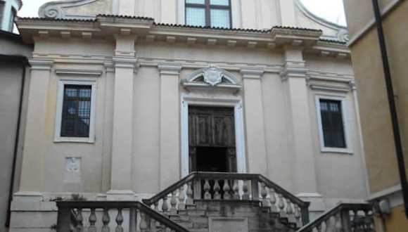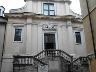 Die kleine Kirche liegt etwa versteckt an der gleichnamigen Piazza und gehörte einst zu einem Franziskanerkloster in der Nachbarschaft. Als die Mönche 1254 in das Kloster bei der neuen Kirche San Francesco umzogen verfiel die Kirche. 1639 erfolgte eine umfassende Restaurierung und die Kirche erhielt ihre heutige Fassade. Im Innenraum gibt es noch Fresken aus dem 13. Jahrhundert.