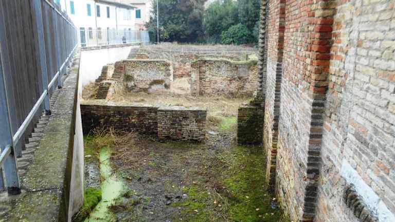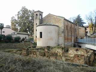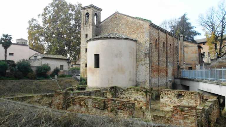 Die römische Kaiserin Galla Placidia ließ die kleine Kirche im 5. Jahrhundert errichten. Und direkt nebenan entstand das für sie bestimmte Mausoleum, in dem jedoch nicht ihr Grab liegt, weil sie im Jahr 450 in Rom verstarb und dann dort beerdigt wurde. Die Kirche und das Mausoleum waren ursprünglich miteinander verbunden, heute ist dies jedoch nicht mehr erkennbar. Neben dem Mausoleum steht in unmittelbarer Nähe auch ein anderes frühchristliches Monument, die Basilika San Vitale; beide zählen zum UNESCO Welterbe und sind gut erhalten während von der Kirche Santa Croce nur noch Überreste erhalten sind. Trotzdem lohnt sich ein Blick darauf, wenn man in der Nachbarschaft ist – und diese Nachbarschaft versäumt wohl kaum ein Besucher von Ravenna.