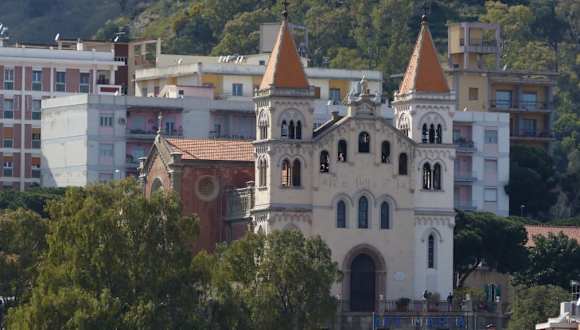Die Kirche liegt hoch über der Stadt mit Blick bis hin zum italienischen Festland auf der anderen Seite der Straße von Messina. Aber dieser Blick belohnt für den etwas beschwerlichen Aufstieg. Vor der Kirche steht eine Statue des verstorbenen Papstes Johannes Paul II., die über die Stadt blickt.