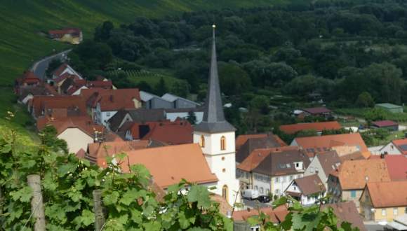 Weithin sichtbar, die Kirche von Escherndorf