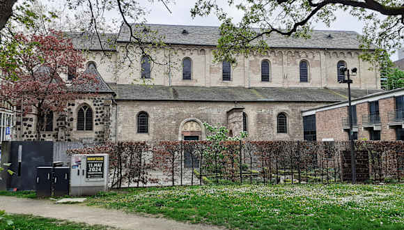 St. Mauritius ist eine Pfarrkirche und wurde erstmals im Jahr 1135 erwähnt. Die Kirche steht auf dem Mauritiuskirchplatz. Sie ist im Stil einer romanischen Pfeiler- und Gewölbebasilika errichtet. Es ist ein dreischiffiger Bau ohne ein Querschiff. Im Krieg wurde sie bis auf die Außenmauern zerstört. 1956 wurde eine kleinere Kirche gebaut. Eine Besteigung des Kirchturms ist nach Voranmeldung möglich. Adresse: Hohe Str. 77-79, 50667 Köln Geodaten: WXP4+XC Köln
