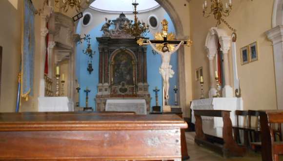 Die erstmals in Dokumenten aus dem Jahr 1408 erwähnte Kirche gegenüber vom Rathaus wurde 1615 restauriert und erhielt dann ihr barockes Aussehen. Auch im Inneren ist die Kirche im barocken Stil gehalten und hat einen sehr schönen Marmoraltar.